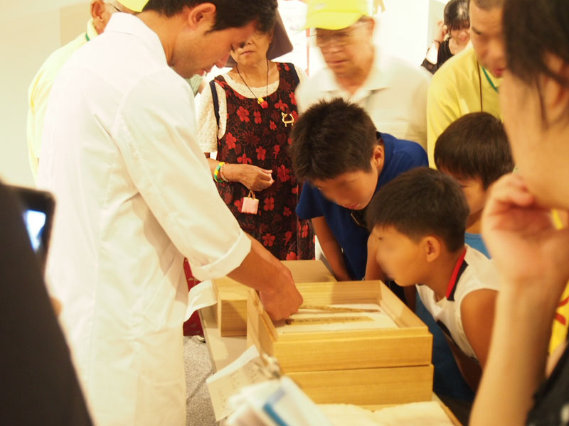動物の字や、いろいろな絵が書かれた木簡を持参して会場に現れ、